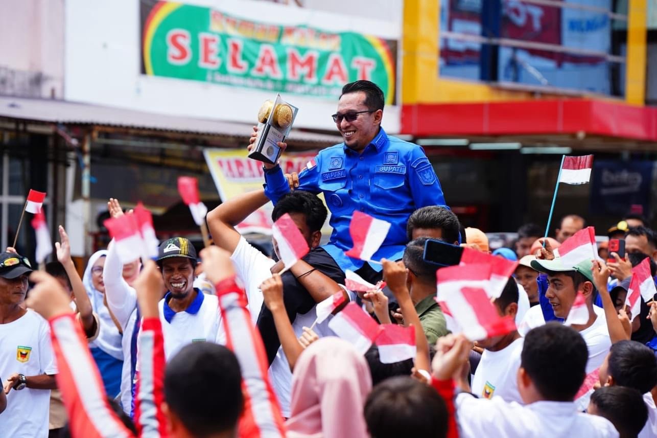 Setibanya di kawasan pasar Batusangkar, Bupati Eka Putra yang memegang piala ditangannya juga digotong beramai-ramai oleh tim pahlawan kebersihan sebagai luapan kegembiraan atas capaian ini.