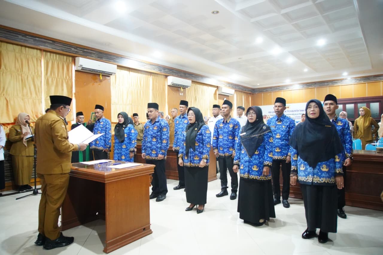 TANAH DATAR – Bupati Tanah Datar Eka Putra mengambil sumpah dan janji 12 orang Pegawai Pemerintah dengan Perjanjian Kerja (PPPK) tahun anggaran 2024, yang diselenggarakan di Aula Eksekutif, Kantor Bupati setempat, Selasa (29/7/2025).