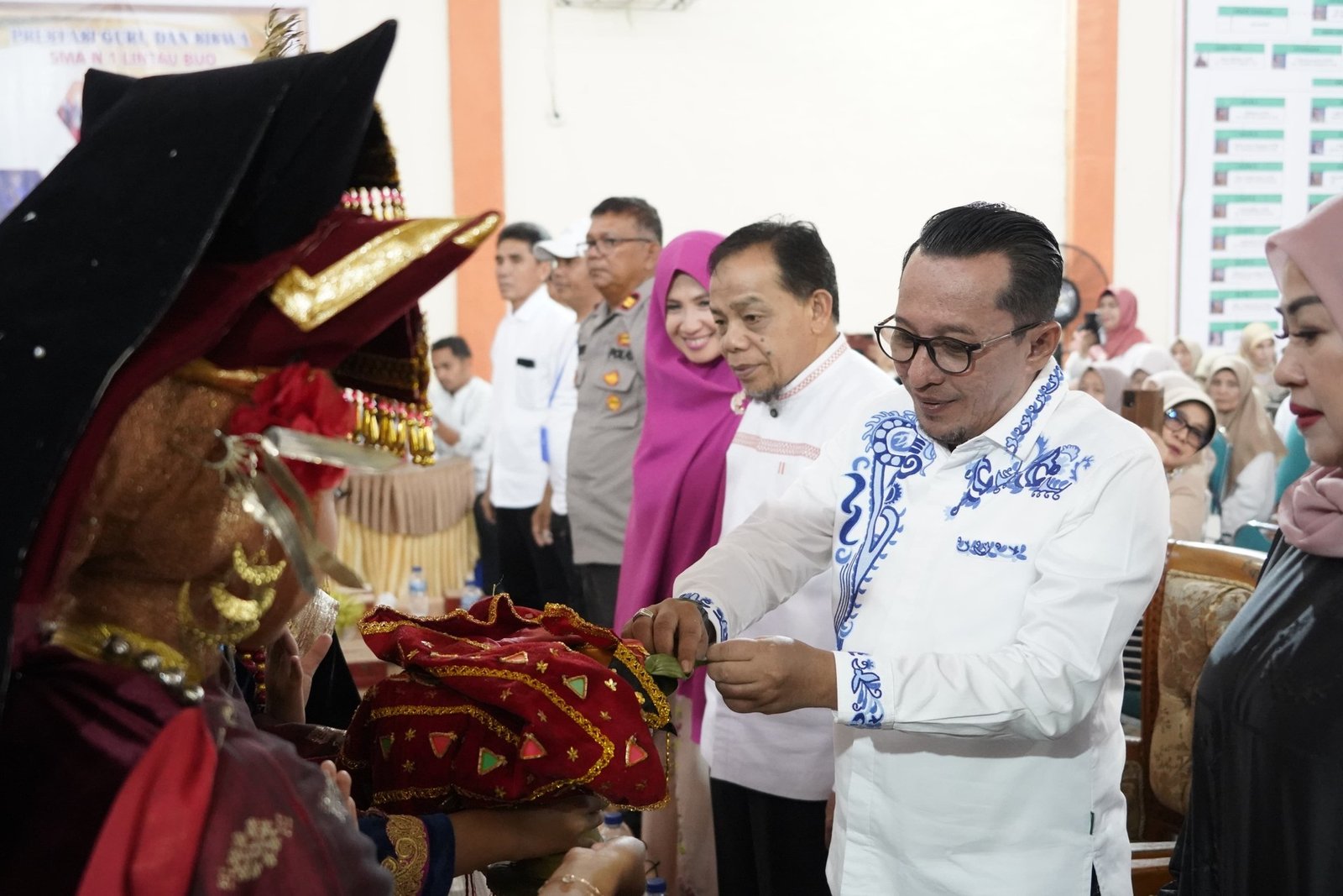 Bupati Tanah Datar Eka Putra, SE, MM kukuhkan pengurus Alumni SMA Negeri 1 Lintau Buo (SMANSALint), pada acara Reuni Akbar Lintas Angkatan SMA Negeri 1 Lintau Buo Tahun 2025 di Aula SMA Negeri 1 Lintau Kecamatan Lintau Buo Utara. (Sumber Foto : Humas Tanah Datar/Clicksuara.com)