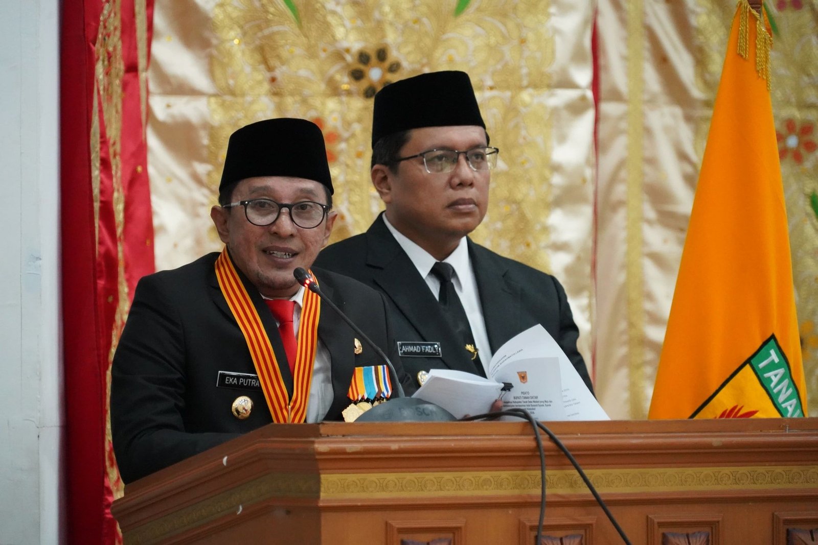 Dalam pidato perdananya, Bupati Eka Putra yang didampingi Wakil Bupati Ahmad Fadly menyampaikan visi kepemimpinannya bertajuk “Terwujudnya Kabupaten Tanah Datar Madani yang Maju dan Berkelanjutan berdasarkan Adat Basandi Syarak, Syarak Basandi Kitabullah (ABS-SBK).”