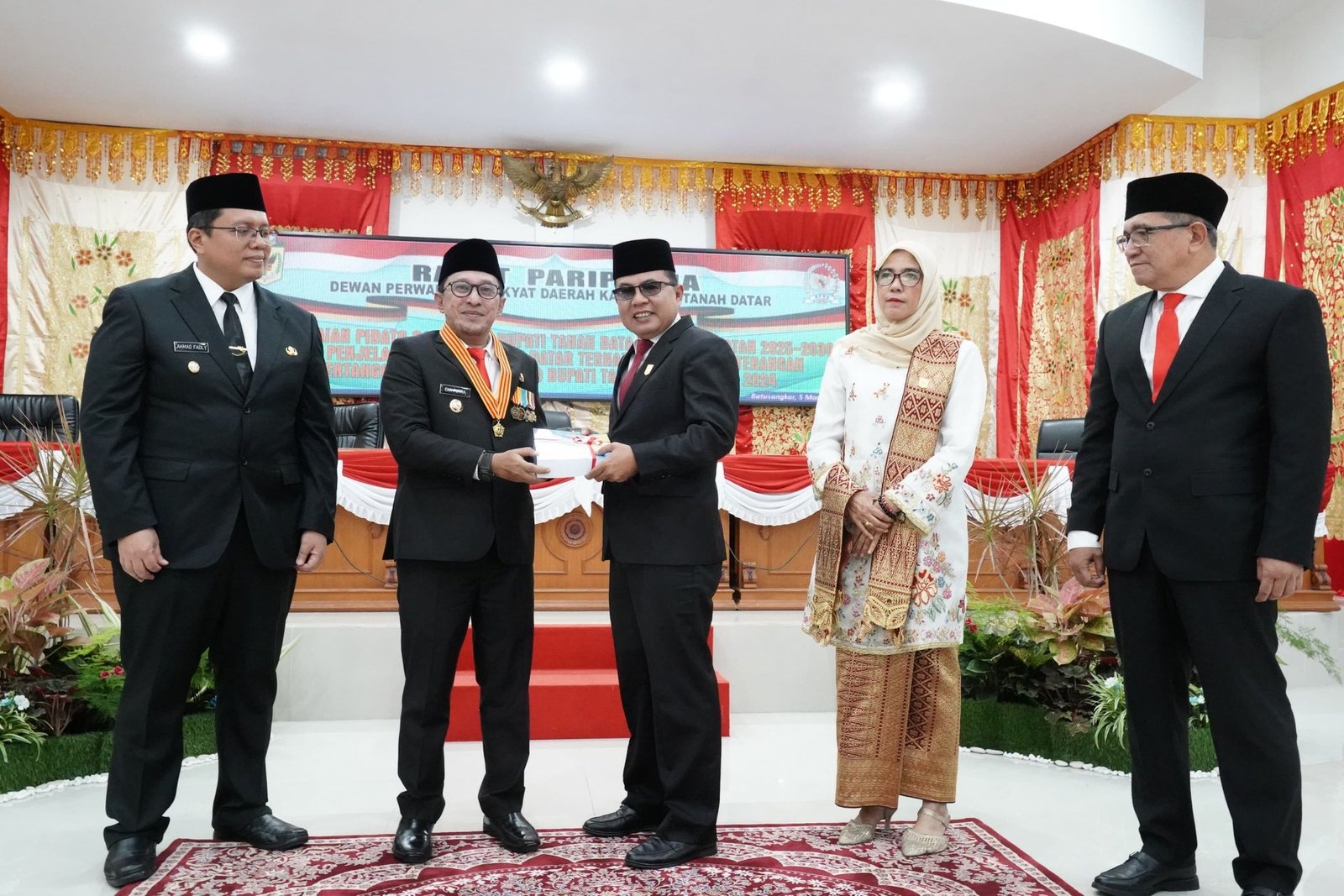 Rapat yang dipimpin oleh Ketua DPRD Anton Yondra didampingi Wakil Ketua Nurhamdi Zahari dan Kamrita, turut dihadiri Wakil Bupati Ahmad Fadly, Pj. Sekda, staf ahli Bupati, kepala OPD, serta undangan lainnya. Dalam kesempatan tersebut, Bupati Eka Putra memaparkan LKPj yang terdiri dari 12 halaman.