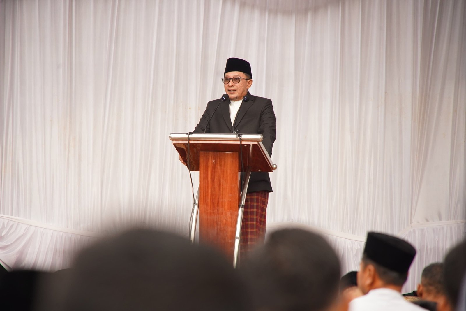 Hal ini disampaikan dalam sambutannya, Senin (31/3/2025) sebelum pelaksanaan shalat Ied yang turut dihadiri anggota DPR RI, anggota DPRD Provinsi Sumatera Barat, Wakil Bupati, Ketua DPRD Tanah Datar, Forkopimda, kepala OPD serta disaksikan ribuan jamaah yang memadati Lapangan Cindua Mato (LCM) Batusangkar.