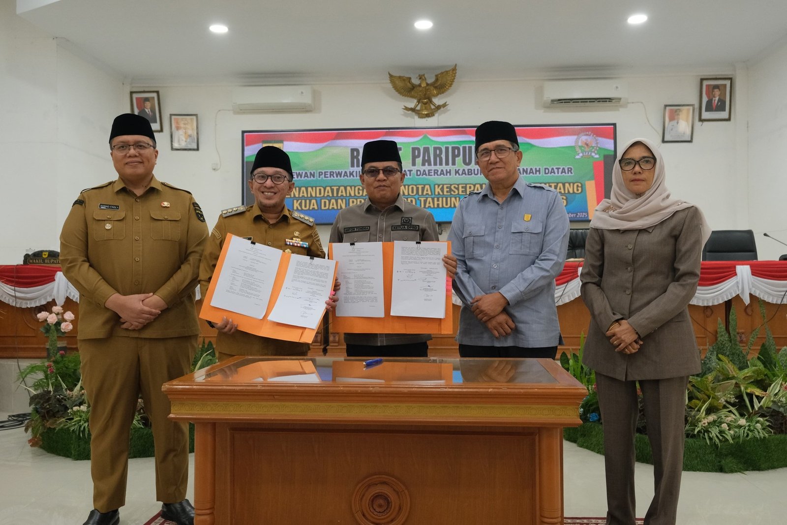 Bupati Tanah Datar Eka Putra, SE, MM., didampingi Wakil Bupati Ahmad Fadly, mengapresiasi pimpinan dan anggota DPRD yang telah membahas secara intensif KUA dan PPAS APBD 2026 hingga tercapainya kesepakatan bersama.