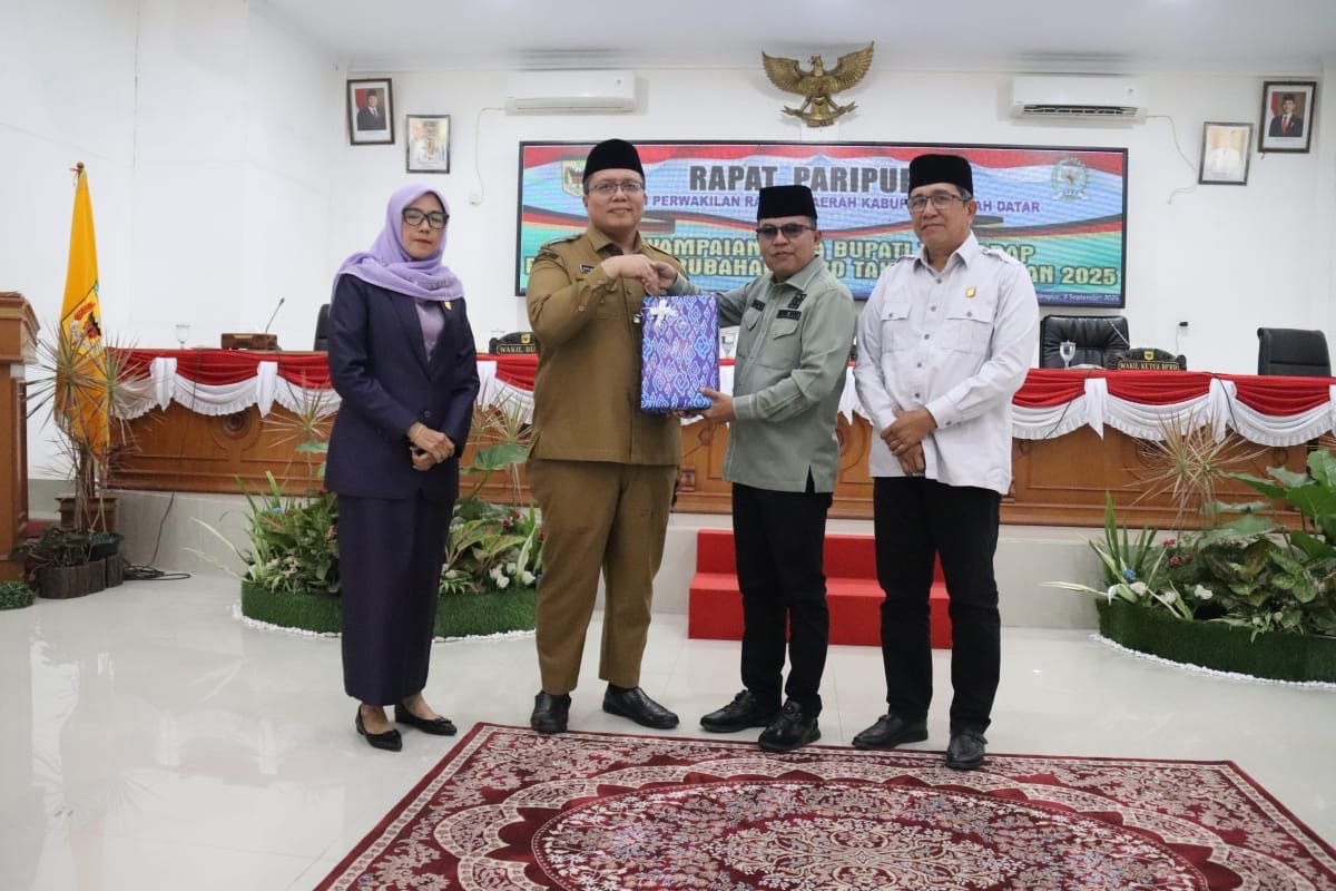 TANAH DATAR – Dewan Perwakilan Rakyat Daerah (DPRD) Kabupaten Tanah Datar menggelar Rapat Paripurna dengan agenda penyampaian Nota Penjelasan Bupati terhadap Rancangan Peraturan Daerah (Ranperda) Anggaran Pendapatan dan Belanja Daerah (APBD) Perubahan Tahun Anggaran 2025. Rapat berlangsung di Ruang Sidang Utama DPRD Tanah Datar, Senin (8/9/2025) lalu.