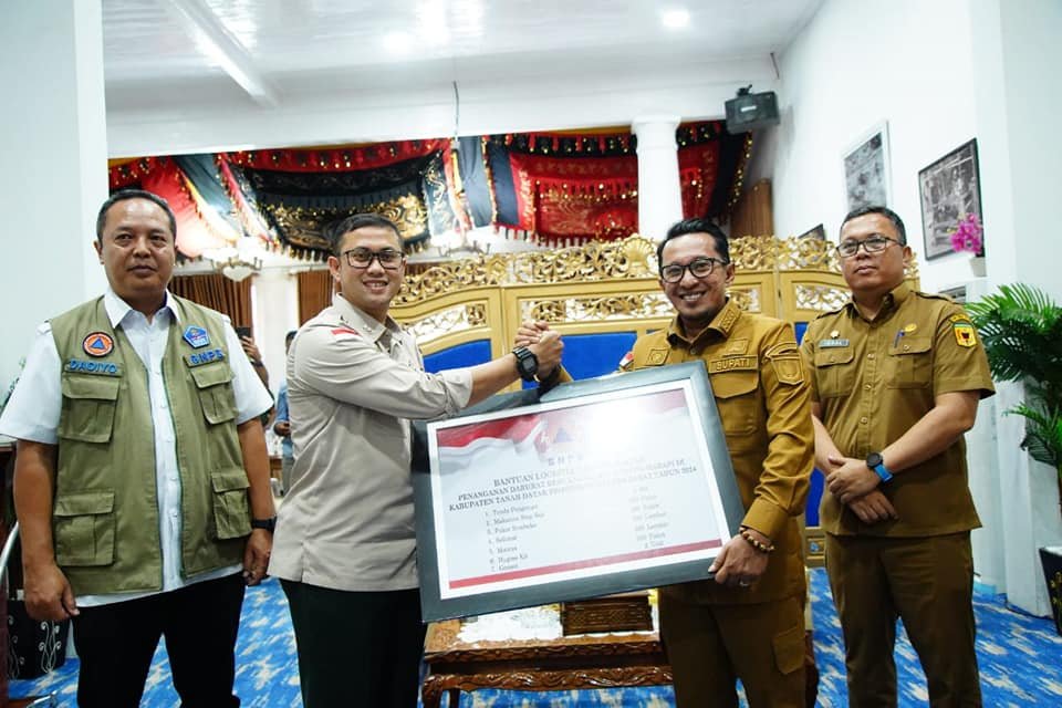 Sementara itu, Tenaga Ahli Kepala BNPB Kombes Pol Dadiyo didampingi Kasubdit Pemulihan Sarana Yustam Syahril mengatakan, bantuan yang diserahkan memang berkat perjuangan Bupati Eka Putra bersama rombongan beberapa hari lalu.