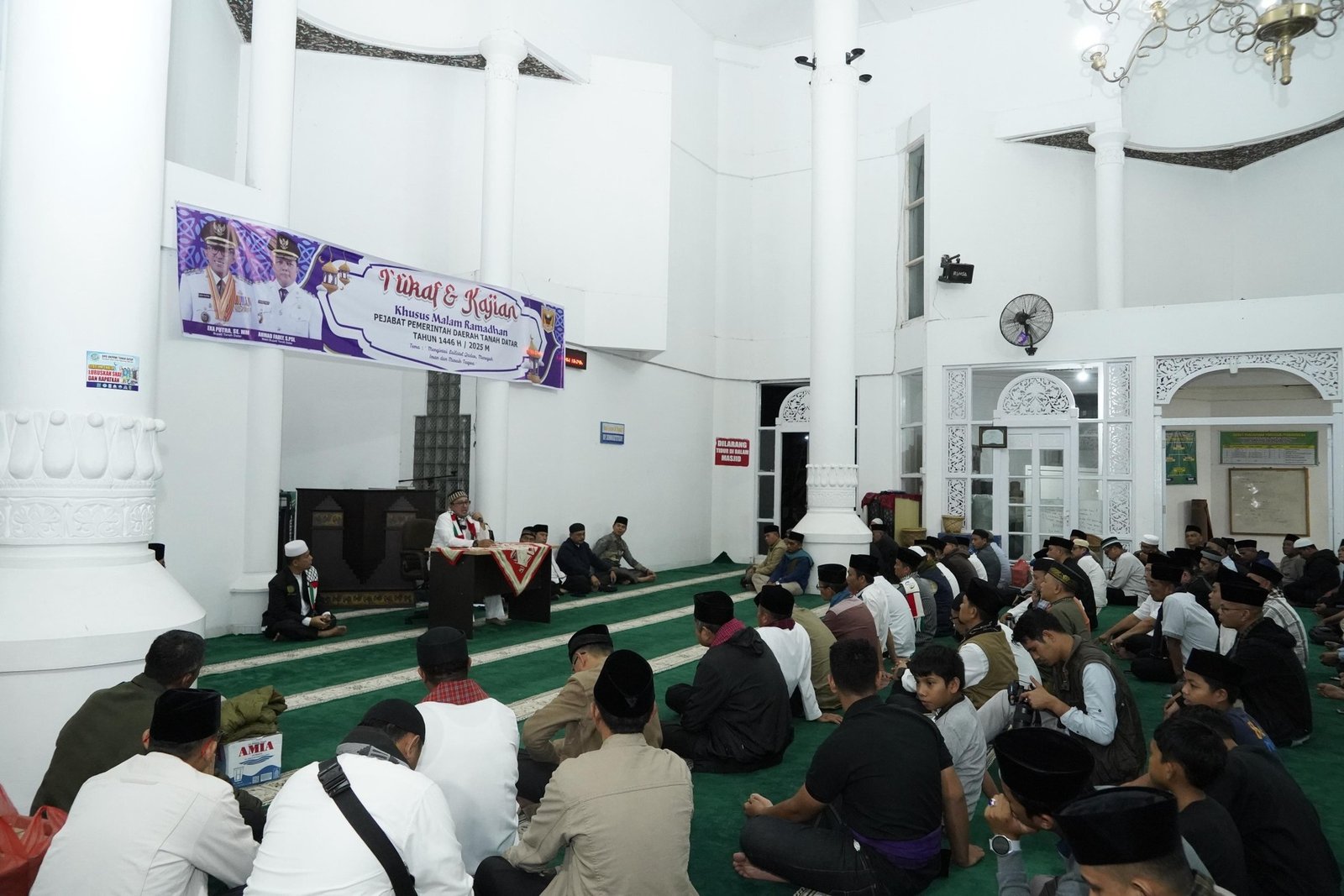 TANAH DATAR – Para pejabat eselon II dan III di lingkungan Pemerintah Daerah Kabupaten Tanah Datar mengikuti I’tikaf dan kajian khusus di malam ramadan 1446 H/2025 M, Jum’at (21/3/2025) di Masjid Nurul Amin Pagaruyung.