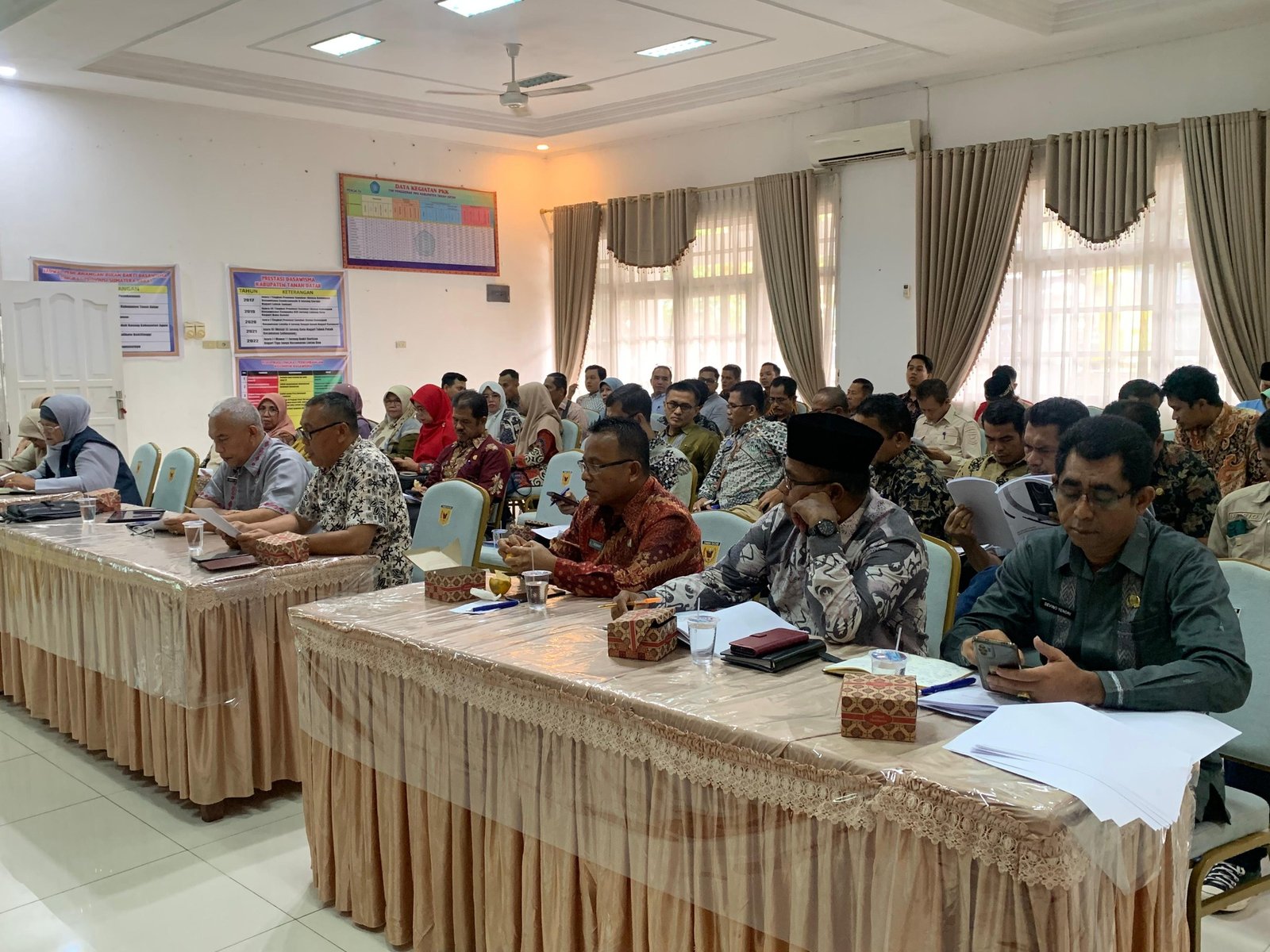 Kegiatan persiapan ini turut dihadiri oleh berbagai pihak terkait, termasuk Organisasi Perangkat Daerah (OPD) pengampu Kabupaten Sehat, anggota DPRD Tanah Datar, Kepala Pemimpin Cabang Bank Nagari Batusangkar, para camat se-Tanah Datar, serta berbagai unsur lainnya yang berperan dalam mewujudkan Kabupaten Tanah Datar yang lebih sehat dan nyaman bagi masyarakat.