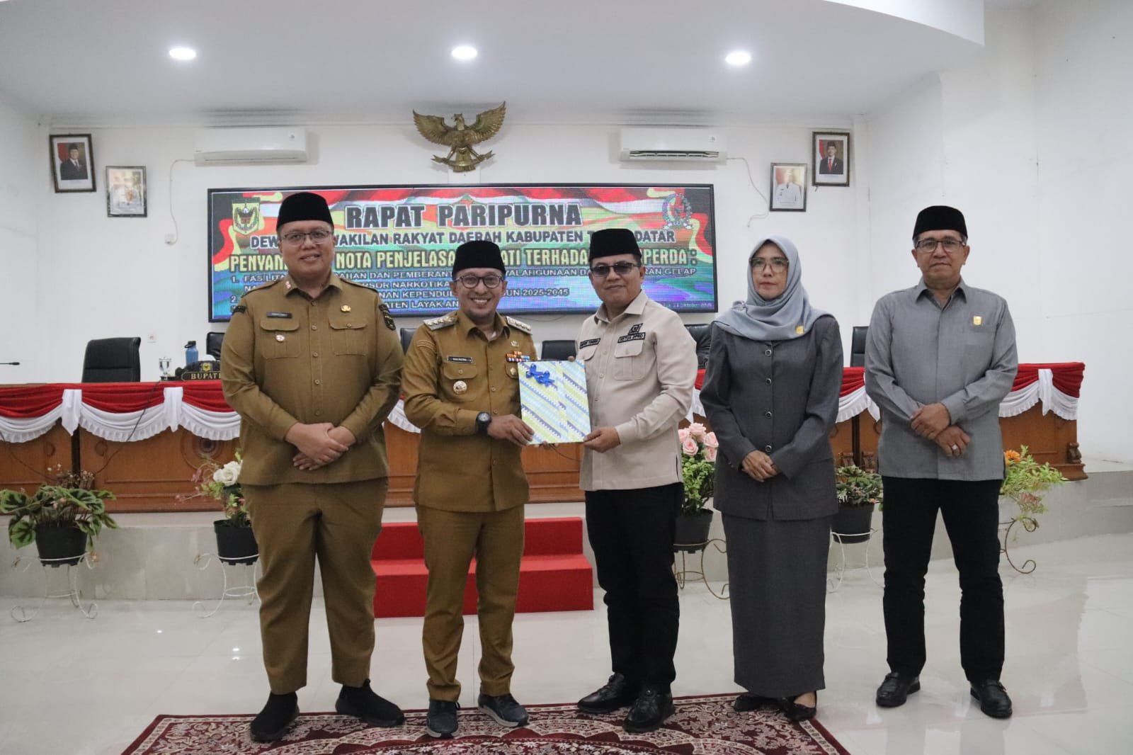 TANAH DATAR – Bupati Tanah Datar Eka Putra mengajukan tiga Rancangan Peraturan Daerah (Ranperda) ke DPRD setempat. Ketiga ranperda yang diajukan dalam rapat paripurna DPRD Tanah Datar tersebut, yakni ranperda tentang fasilitasi pencegahan dan pemberantasan penyalahgunaan dan peredaran gelap narkotika dan prekursor narkotika, ranperda tentang grand desing pembangunan kependudukan kabupaten tahun 2025-2045, dan ranperda tentang penyelenggaraan kabupaten layak anak.