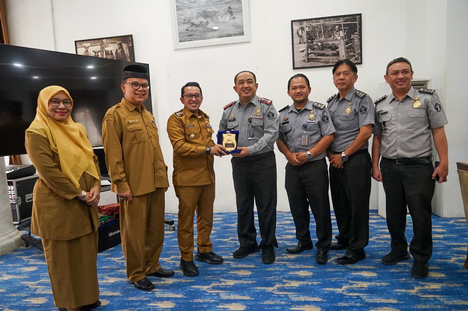 TANAH DATAR – Bupati Tanah Datar Eka Putra didampingi Kadis Parpora Riswandi dan Kabag Hukum Audia Safitri menyambut Kunjungan Kepala Kantor Imigrasi (Kanim) Klas I Agam Budiman Hadiwasito bersama jajaran, Senin (24/3/2025) di Indojolito Batusangkar.