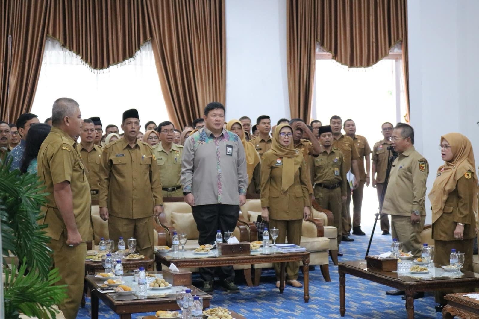 Rombongan yang dipimpin Plh. Direktur Pembinaan Peran Serta Masyarakat KPK RI Friesmount Wongso disambut Sekretaris Daerah Iqbal Ramadi Payana, jajaran staf ahli asisten dan kepala OPD di lingkup Pemerintah Kabupaten Tanah Datar.