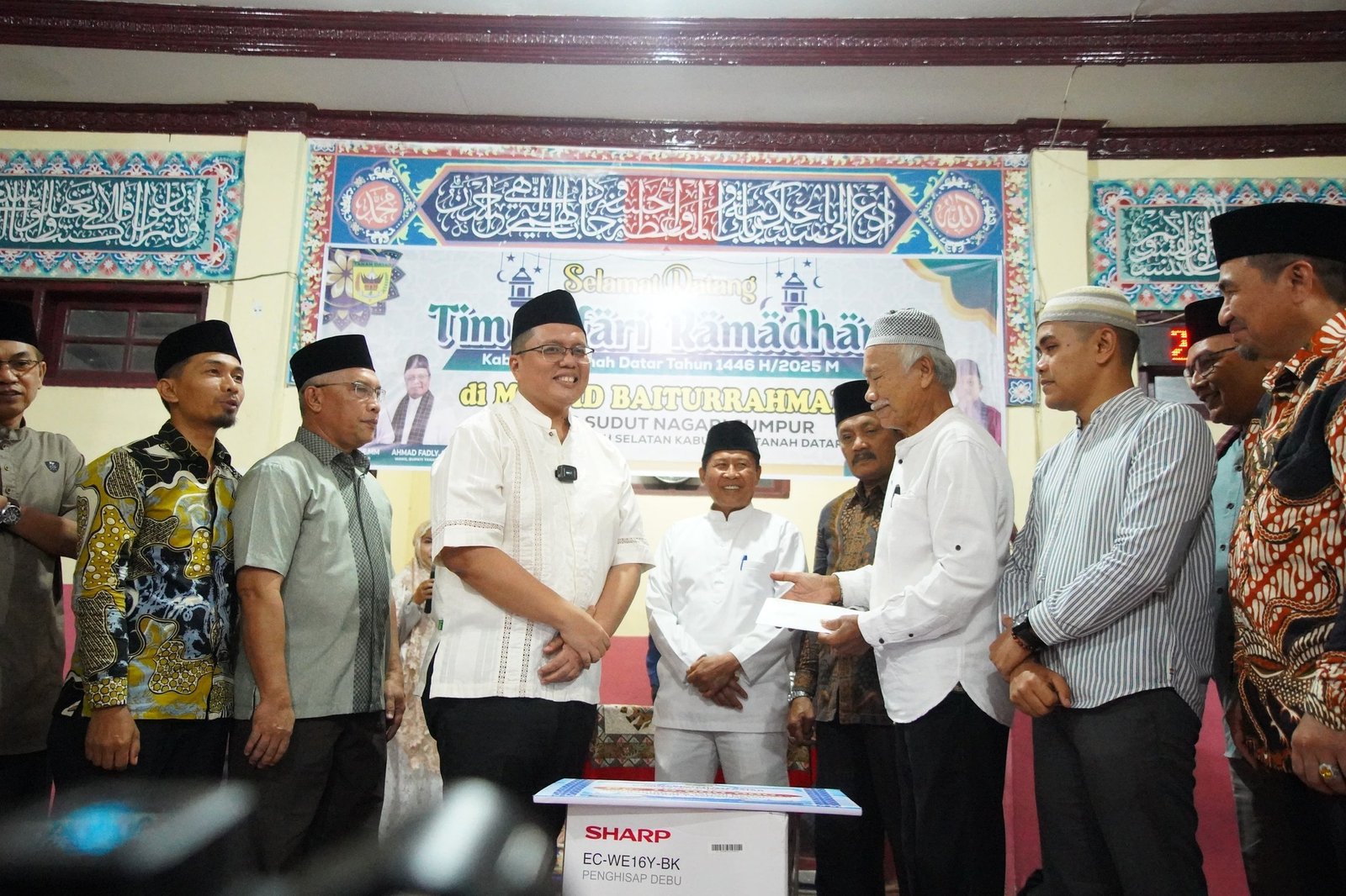 Sebagai bentuk kepedulian, Wabup Ahmad Fadli menyerahkan bantuan sebesar Rp10 juta dan satu unit vacuum cleaner kepada pengurus masjid, serta dana berbuka puasa sebesar Rp2,5 juta yang berasal dari Bank Nagari Syariah Batusangkar.
