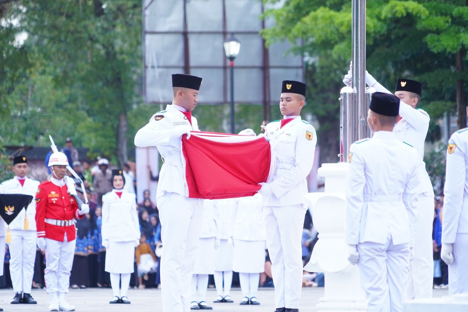 Prosesi sakral penurunan bendera Merah Putih ini berjalan dengan khidmat dan lancar. Dengan persiapan maksimal, para Pasukan Pengibar Bendera Pusaka (Paskibraka) berhasil menjalankan tugasnya dengan baik.