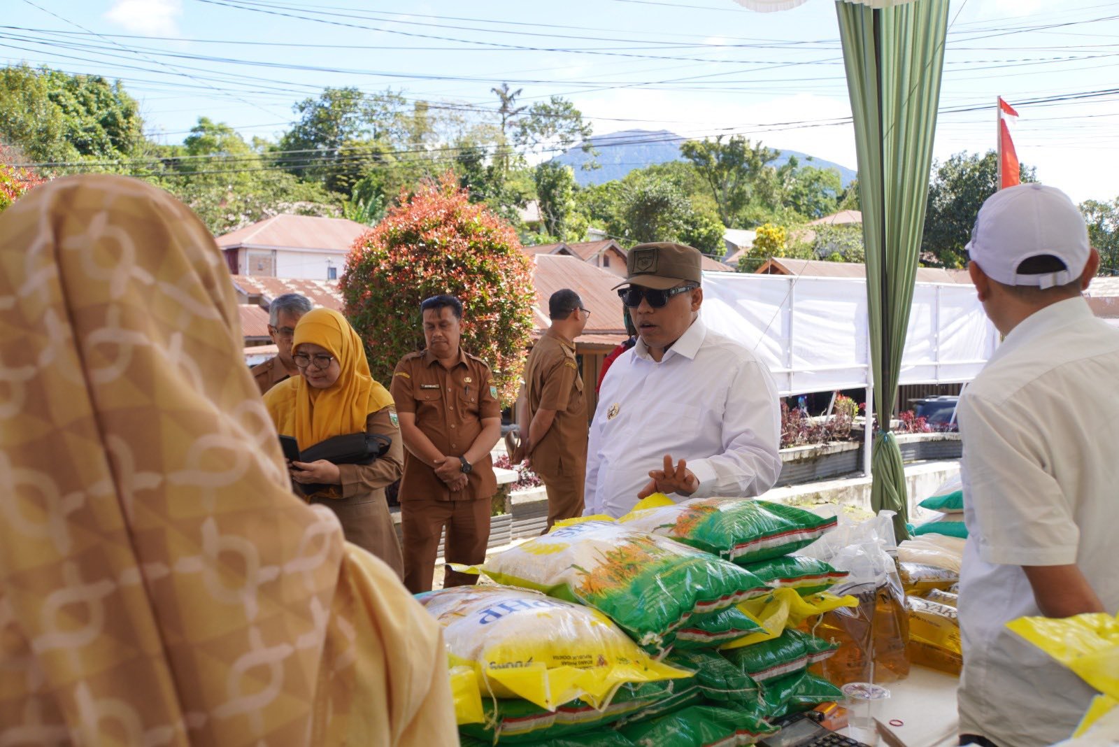 Beberapa komoditas yang tersedia di antaranya cabai merah Rp82.000/kg, bawang merah Rp37.000/kg, buncis Rp20.000/kg, pakcoy Rp5.000/bungkus, bawang daun Rp12.000/kg, timun Rp10.000/bungkus, tomat Rp10.000/bungkus, wortel Rp20.000/bungkus, gula pasir Rp17.500/kg, minyak goreng Rp15.700/liter, beras premium 10 kg Rp165.000, beras premium 5 kg Rp82.500, dan beras SPHP Rp62.500/5 kg.